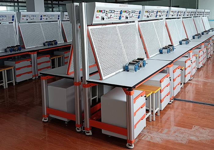 2、實(shí)訓(xùn)桌桌面采用25mm麻灰色高密度層壓板封邊特制,有效提高絕緣等級;實(shí)驗(yàn)桌底部裝有至少4個導(dǎo)向輪,方便實(shí)訓(xùn)臺架移動;