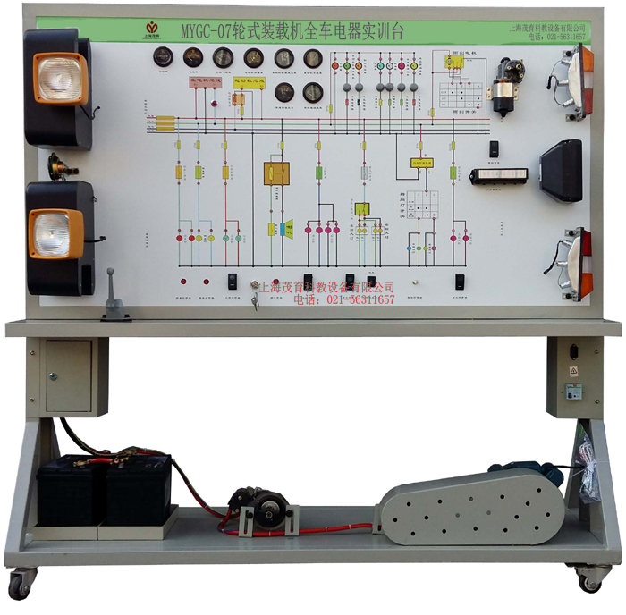 該設(shè)備采用 ZC50輪式裝載機(jī) 整車電器實(shí)物為基礎(chǔ),充分展示儀表系統(tǒng)、燈光系統(tǒng)、雨刮系統(tǒng)、喇叭系統(tǒng)、發(fā)動機(jī)電器系統(tǒng)、起動系統(tǒng)和充電系統(tǒng)等電器各系統(tǒng)的組成結(jié)構(gòu)和工作過程。