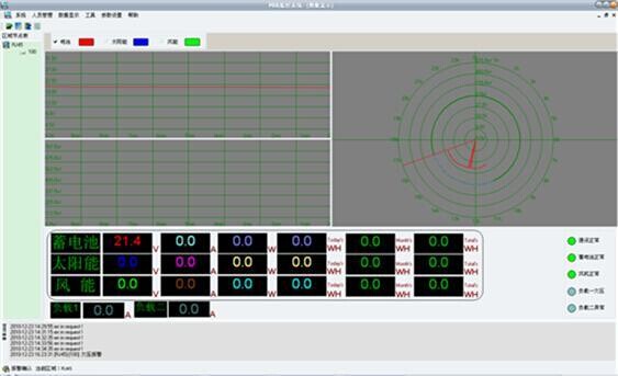 2、顯示內(nèi)容:蓄電池電壓、風(fēng)機(jī)電壓、光伏電壓、風(fēng)機(jī)電流、光伏電流、風(fēng)機(jī)功率、光伏功率,能量模擬圖,當(dāng)前風(fēng)速(米/秒),當(dāng)前風(fēng)向(度),當(dāng)前風(fēng)力資源平估。