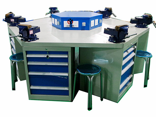 六工位鉗工桌,鉗工桌,鉗工實驗室設(shè)備,鉗工實訓(xùn)臺可以使學(xué)生完成常用工具的認識和使用,包括錘、鋸、銼、鑿、劃線、裝配、調(diào)試、安裝、維修等,可有效提高學(xué)生的操作水平和動手能力,是各大院校,技校不可缺少的實訓(xùn)教學(xué)設(shè)備。